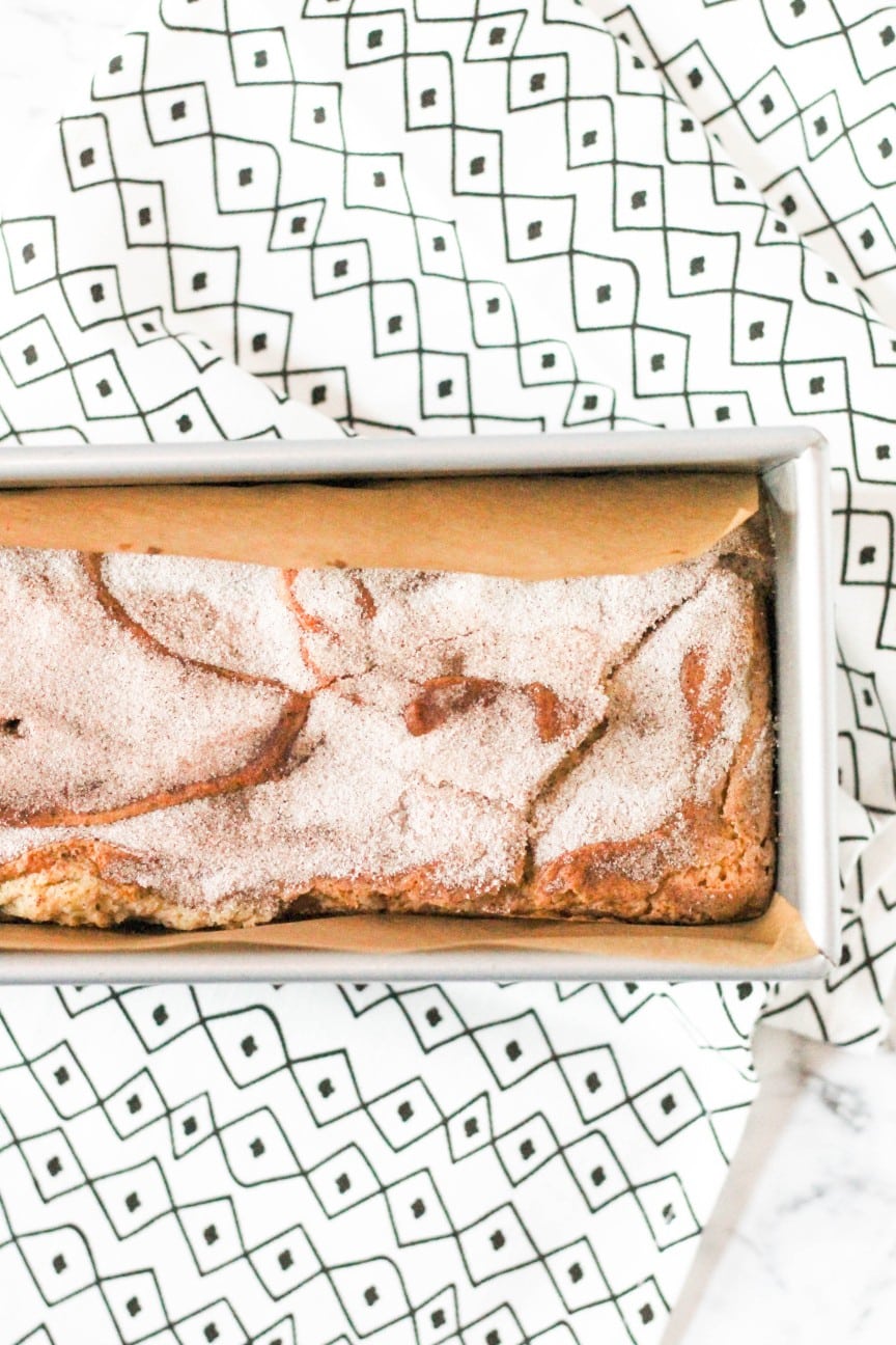 Today we’re talking about cookies. Oh wait, I mean cake! Cake ABOUT cookies! Actually, snickerdoodles are just ya know, cinnamon sugar cookies, so this cake is just kind of like a cinnamon swirl loaf cake. But I always find myself coming back to classic flavors, and this is one of them.